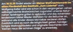 außerdem: Weihnachtsmarkt vom „kleinen Haus der schönen Dinge“
